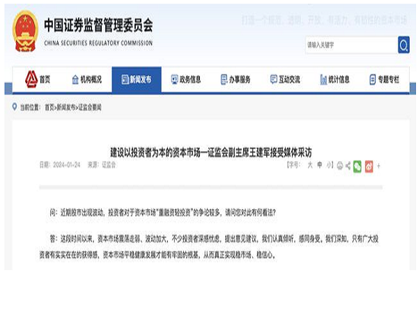 建設以投資者為本的資本市場——中國證監會副主席王建軍接受媒體采訪