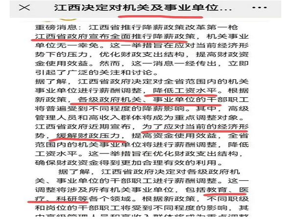 12月14日,一則“江西將對機關事業單位降薪”的消息在社交平臺流傳,引發網友關注。