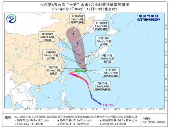 8月7日06時,中央氣象臺繼續發布臺風藍色預警