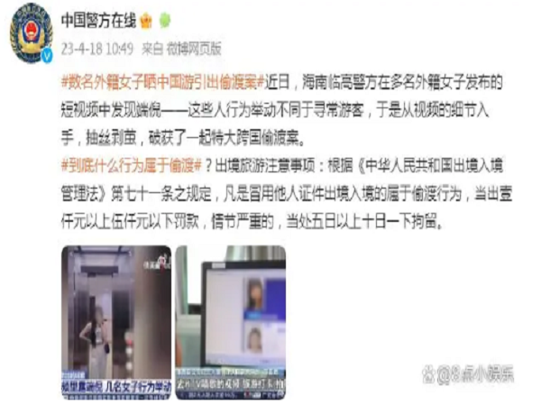 最近,海南臨高警方在多名外籍女子發布的短視頻中發現她們的行為舉動不同于一般的游客,于是從視頻的細節入手,抽絲剝繭,破獲了一起特大跨國偷渡案。
