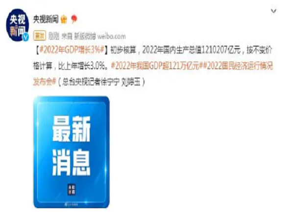 國家統計局:2022年全年國內生產總值比上年增長3.0%