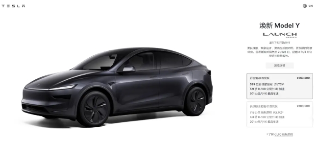 特斯拉官網更新煥新Model Y交付時間,首發版車型將限時銷售