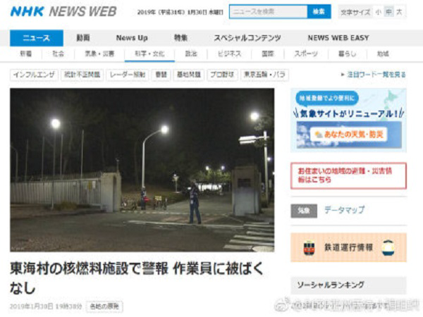 日本茨城縣一國營核燃料處理設施發生核泄漏事故,當時現場有9名工作人員。