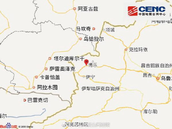 新疆博州博樂市發生4.9級地震 震源深度22千米