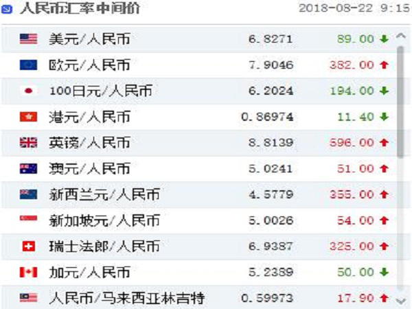 人民幣兌美元中間價較上日調升395點至6.8976,中間價升值至2018年10月8日以來最高,升幅創2018年8月28日以來最大。