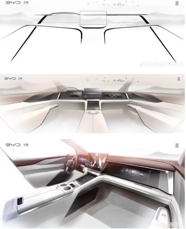 比亞迪夏MPV內飾設計圖公布:前排三屏布局,廣州車展亮相