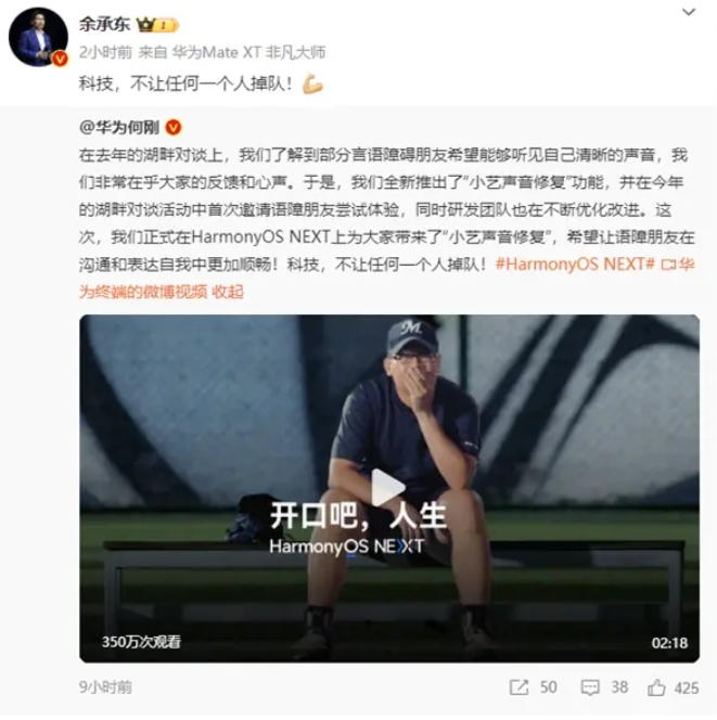 余承東:科技 不讓任何一個人掉隊