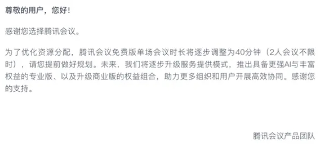 騰訊會議免費時長將縮短至40分鐘:2人會議不限時