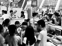 8月23日,因臺風原因,南寧機場一航班無法起飛,一群未成年人在家長的“指示”下搶占航空公司柜臺,并在柜臺里玩起了游戲。事發原因是因航班受臺風影響后,旅客不滿航空公司安排,在未經航空公司工作人員允許情況下,強行讓孩子進入柜臺內。最終,警方趕到現場,勸離進入柜臺內的孩子,并對孩子家長進行了批評教育。(8月31日《北京青年報》)