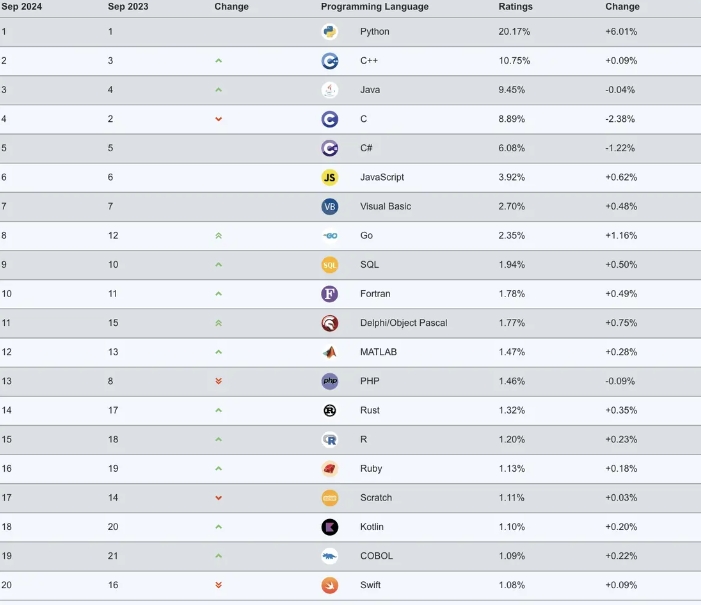 TIOBE編程指數9月排行榜公布:C語言被Java超越,跌至第四“處于歷史最低位置”