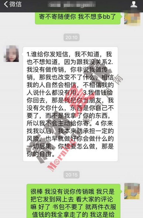 小鄧說,學姐不承認自己是做傳銷,并威脅他不要將此事說出去,目前,他已報警。