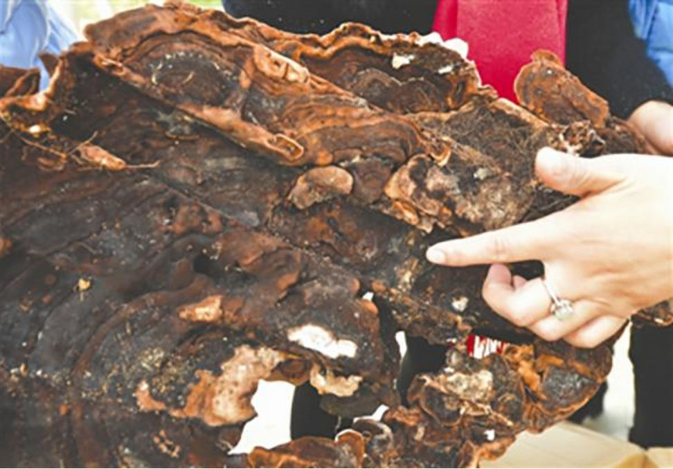 大家聞訊圍了過來,工人們把棺材拖出來后,菌子出現在眾人眼前。“我就看到白色的一團,開始還以為是棺材上的裝飾。”現場的人七嘴八舌議論開來,李女士的女兒通過手機進行網絡檢索,“看到網上說這個叫 血靈芝 ,還有人說這個菌子有挺高的藥用價值。”李女士回憶,他們在網上看到,其他地方曾有類似菌子被人以100萬元的價格收購。