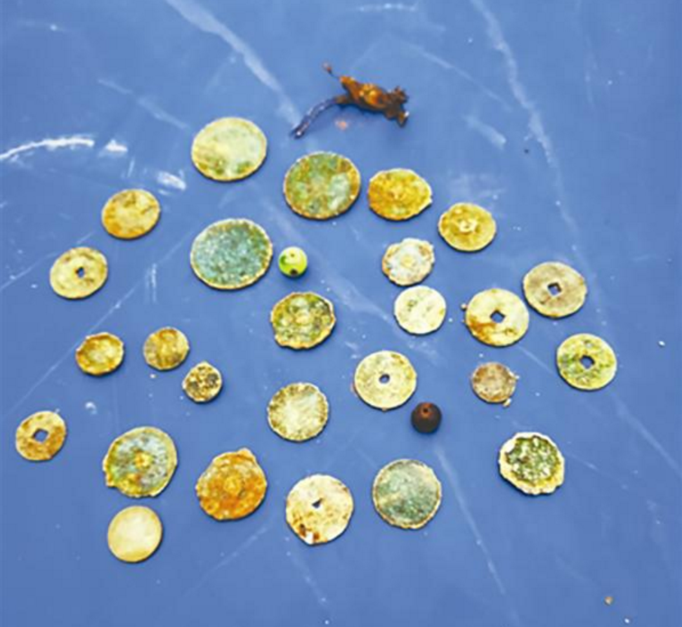李女士和親友在家族墓地中發現的古錢幣和手鐲 受訪者供圖