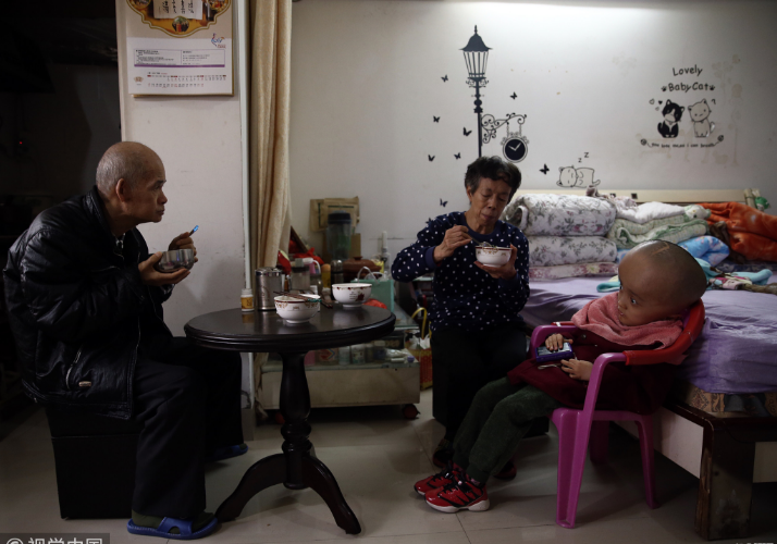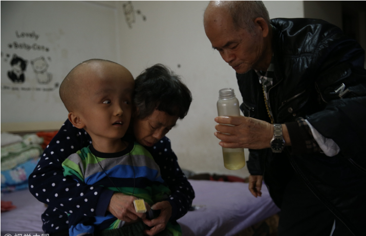 如今,孩子慢慢大了,兩個老人也抱不動了,孩子的大小便,都是兩位老人用盆和礦泉水瓶來接。去年8月,在社會愛心人士的關心和捐助下,蔡梓楠夫婦賣掉了在晉江安海鎮的套房,共籌集80多萬元,帶著樂樂在北京接受第一療程的干細胞移植,整個過程花了200萬元。