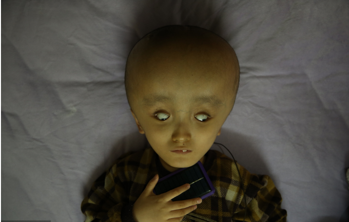 2017年12月12日,福建泉州,晉江市一名7歲男孩,因酷似科幻片里的“外星人”,被網友稱“外星人”寶寶。這名男孩叫樂樂,現在由兩位7旬老人撫養。柳濤/視覺中國。