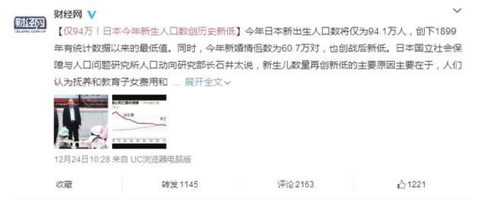 94萬!日本今年新生人口數創歷史新低