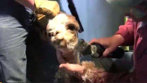 而剃了毛之后的羊駝,是...這樣的: