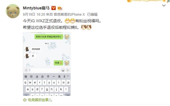 低于王思聰退役這件事,IG電子競技俱樂部戰隊經理藏馬在微博上表示,9月19日王思聰宣布WXZ放棄參加S8且WXZ正式退役,將從Roster list中刪除,不隨隊參加S8的比賽。