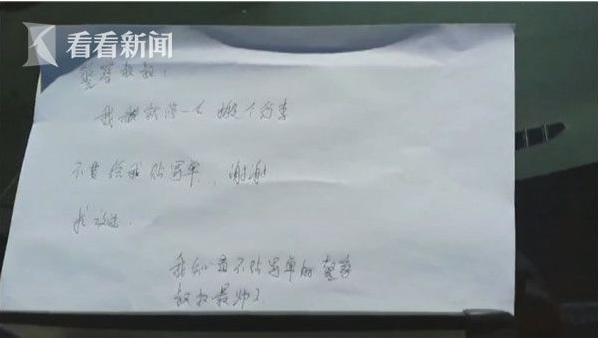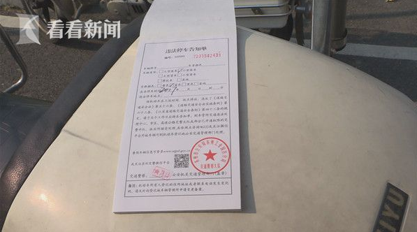 一輛違停越野車的前擋上,一張白紙非常醒目。獨墅湖科教創新區中隊警輔張領領告訴記者:“有一張紙,感覺很奇怪,我就走近一看,上面寫著一行字。如果你不拍的話,你是最帥的警察叔叔,就這樣說的。”