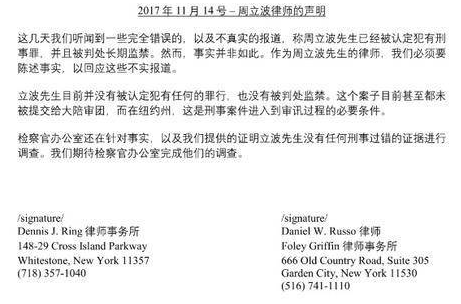網曝周立波因涉毒涉槍案被判刑41年,15日,周立波發聲明辟謠稱:“ 本人在美國一切安好,每日接送孩子上學日子過得很踏實。”并表示要向躲在陰暗角落的卑鄙造謠者討一個說法。對此,他在微博上@屠磊律師。