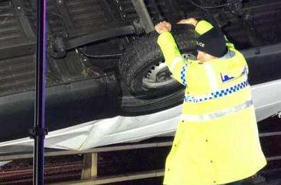 近日一警察徒手拽住懸空汽車,達15分鐘,上演大力水手,避免了悲劇的發生,他是如何做到的?一起來看具體報道!英國西約克郡交通警察馬丁·威利斯近日受到表揚,因為他徒手拽住一輛車頭沖出橋梁護欄的汽車,阻止了可能發生的車墜人亡慘劇。